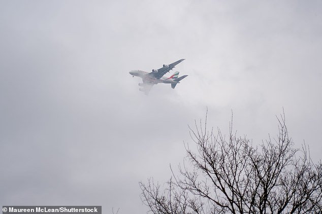 Un avión vuela sobre la nube inferior sobre el Windsor de Berkshire en un día oscuro la semana pasada