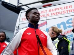 Entre los hombres hay una bandeja con comida y bebida y un montón de revistas repartidas sobre unas otomanas.