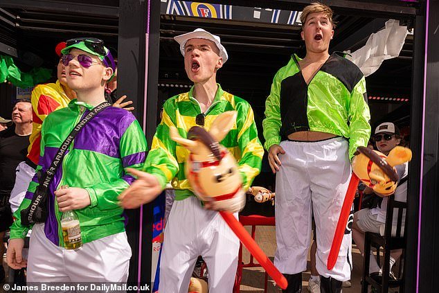 La mayoría de los ‘caballos’ son los fabricantes en las vacaciones con vestidos inflables, otros están equipados con sedas y tontos de simulacros de joyas, fanáticos de las carreras en Cottswalds y gritan lejos del fascinador y los giros.