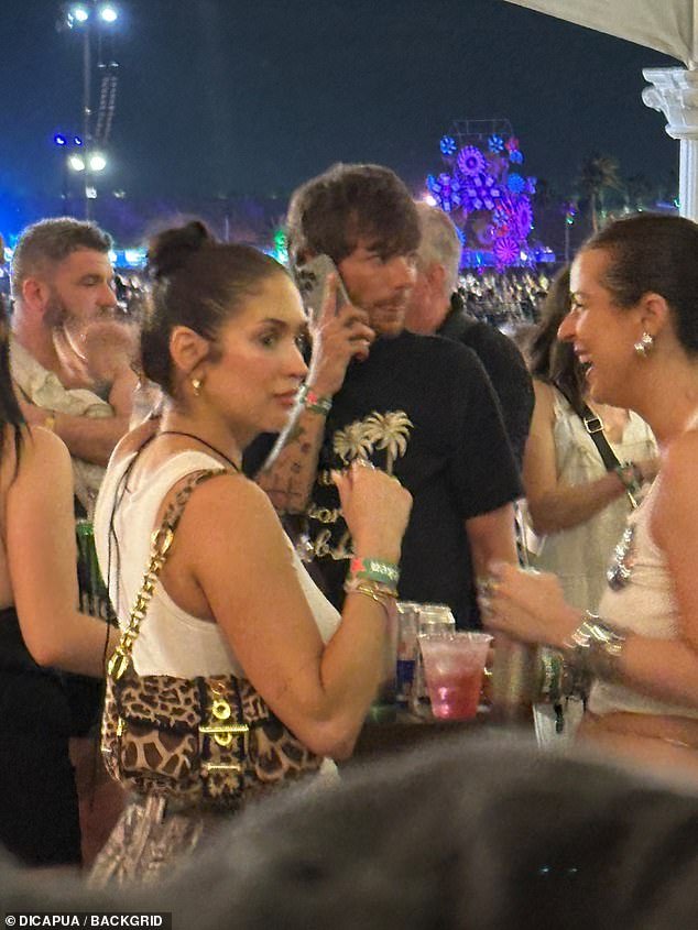 Se vio a Louis disfrutar del festival a pesar de ser adhesivo en su teléfono y charlar con un pulso en la región VIP.