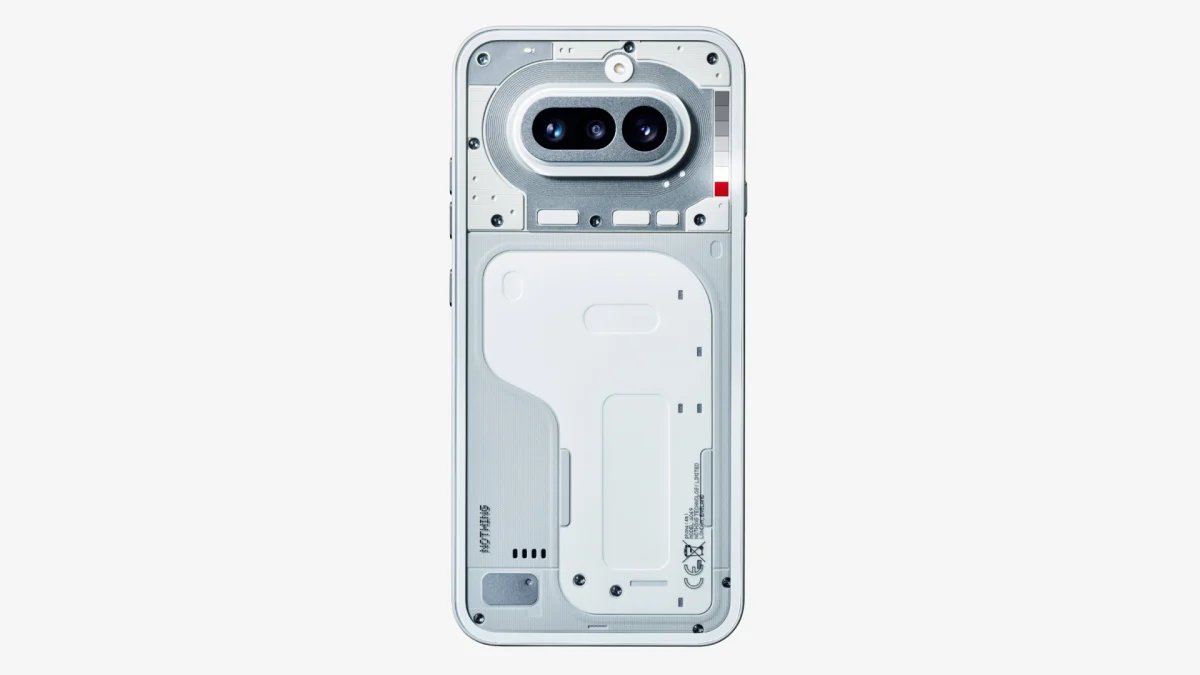 La imagen muestra el teléfono desde atrás, mostrando el diseño artístico/semidesnudo característico de Nothing. También revela un nuevo tipo de barra de glifos junto a la protuberancia de la cámara con nueve mini-LED, que quizás ofrezca más opciones de personalización.