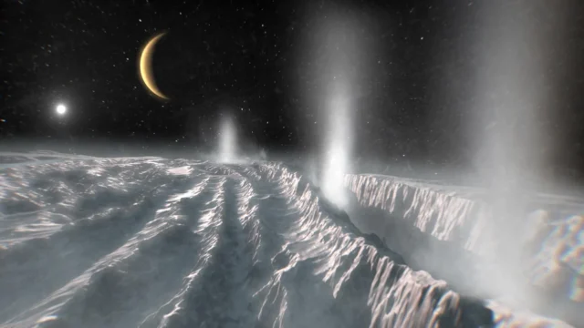 En 2005, Cassini primero encontró evidencia de que había un océano oculto debajo de la superficie de hielo de Enesladus. Los chorros de agua estallan de grietas cerca del Polo Sur de la luna, disparando hielo en el espacio. Los granos de arena más pequeños, pequeños trozos de hielo regresan a la superficie de la luna, otros huyeron y hacen un anillo alrededor de Saturno que detecta la órbita del Orcelado.