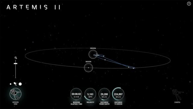El sitio web es fácil de navegar. Verás una representación visual del progreso de Artemis II, incluida su velocidad, distancia de la Tierra y distancia a la Luna. Los usuarios de aplicaciones móviles obtienen todo lo anterior con un rastreador de realidad aumentada adicional que les permite apuntar su teléfono al cielo y ver dónde está Artemis II en relación con su ubicación en la Tierra. Funciona de forma muy parecida a Google Star Maps y Otras aplicaciones de observación de estrellas Eso usa la misma tecnología.