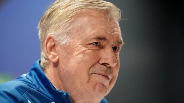 El entrenador de Brasil, Carlo Ancelotti, sonríe y mira hacia adelante.