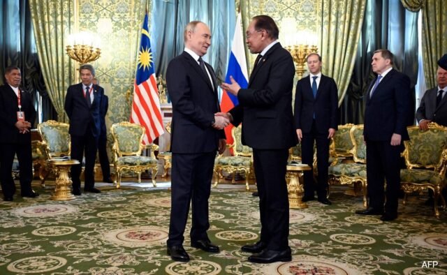 El primer ministro de Malasia, Anwar Ibrahim, llegó a Rusia el jueves que hubo una primera visita oficial del primer ministro del país en unos 20 años. Anwar conoció al presidente ruso Vladimir Putin en el Kremlin, donde los líderes compartieron el momento de la luz de la luz mientras visitaban St. Andrew’s Hall.