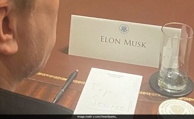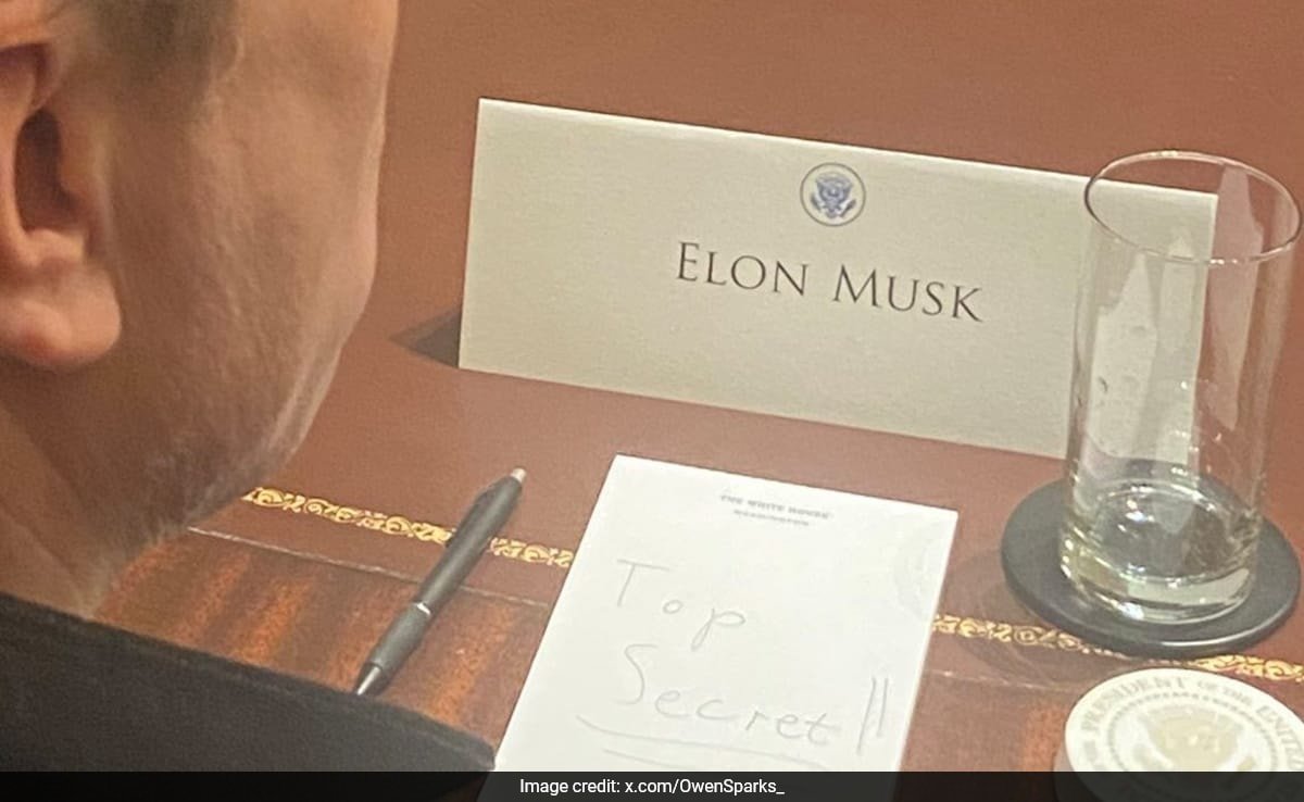 Una foto del bloc de notas de Elon Mask se volvió viral de la reciente reunión del gabinete del presidente estadounidense Donald Trump. En la imagen, Tesla y SpaceX CEO están sentados en la mesa de conferencias con la tarjeta de nombre que lee ‘Elon Kasturi’ frente a él. La palabra “Top Secret” sobre la mesa era un bloc de notas en la Casa Blanca, escrita en tinta azul, dos veces subrayada.