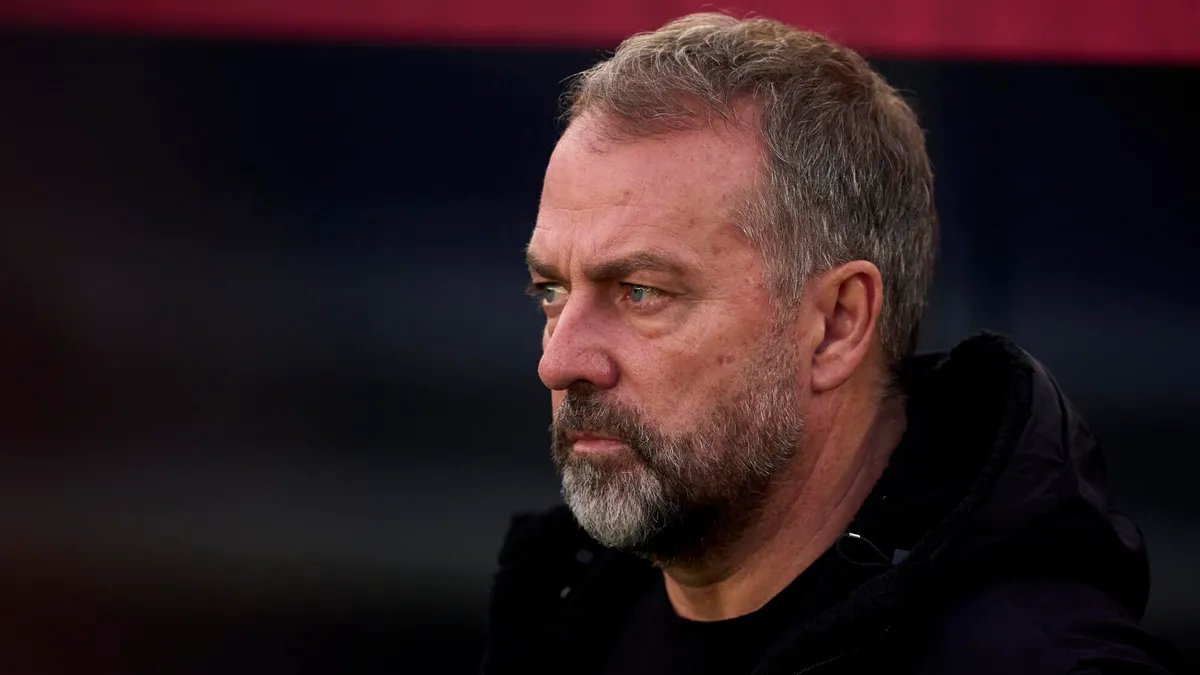 El entrenador del FC Barcelona, Hansi Flick, observa antes del partido de La Liga EA Sports entre el FC Barcelona y el Athletic Club en el Spotify Camp Nou el 22 de noviembre en Barcelona, España.