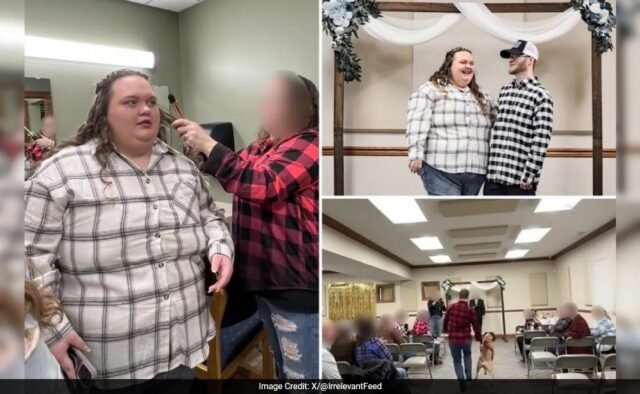 Una novia estadounidense está siendo trolleada en las redes sociales después de un video de su boda presupuestaria donde se volvió viral con un vestido de novia tradicional pero caro con jeans y una camisa a cuadros. Amy Baron (22) llevaba un partido en una biblioteca pública en West Virginia, casada con su esposo ahora Hunter, de 24 años, en enero. Según un informe, alrededor de 20 invitados participaron en la boda LED-Back, donde la pareja solo tenía la intención de gastar $ 1000 dólares. New York PostEl
