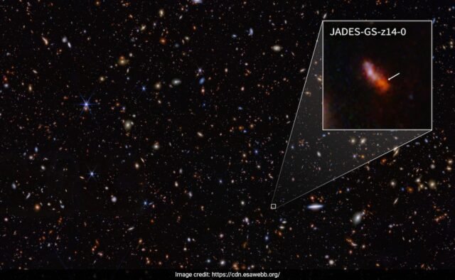 Galaxy ZS-GS-Z 14-0, que fue descubierto por el telescopio espacial James Web el año pasado, estaba tan lejos que su luz tardó 13.4 mil millones de años en llegar a la Tierra.