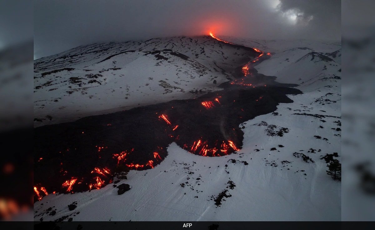 El lunes 10 de febrero, la lava explotó de la creta Nuva, proporcionando miras espectaculares contra el pico cubierto de nieve de Mount Atna. Los espectadores ven la imagen rara y fascinante de la reunión de nieve en línea en la lava fundida en línea, y los videos de la explosión, junto con la audiencia, se vuelven virales.