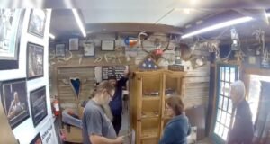 El propietario de la tienda, Hitler, se niega al cuchillo juvenil...