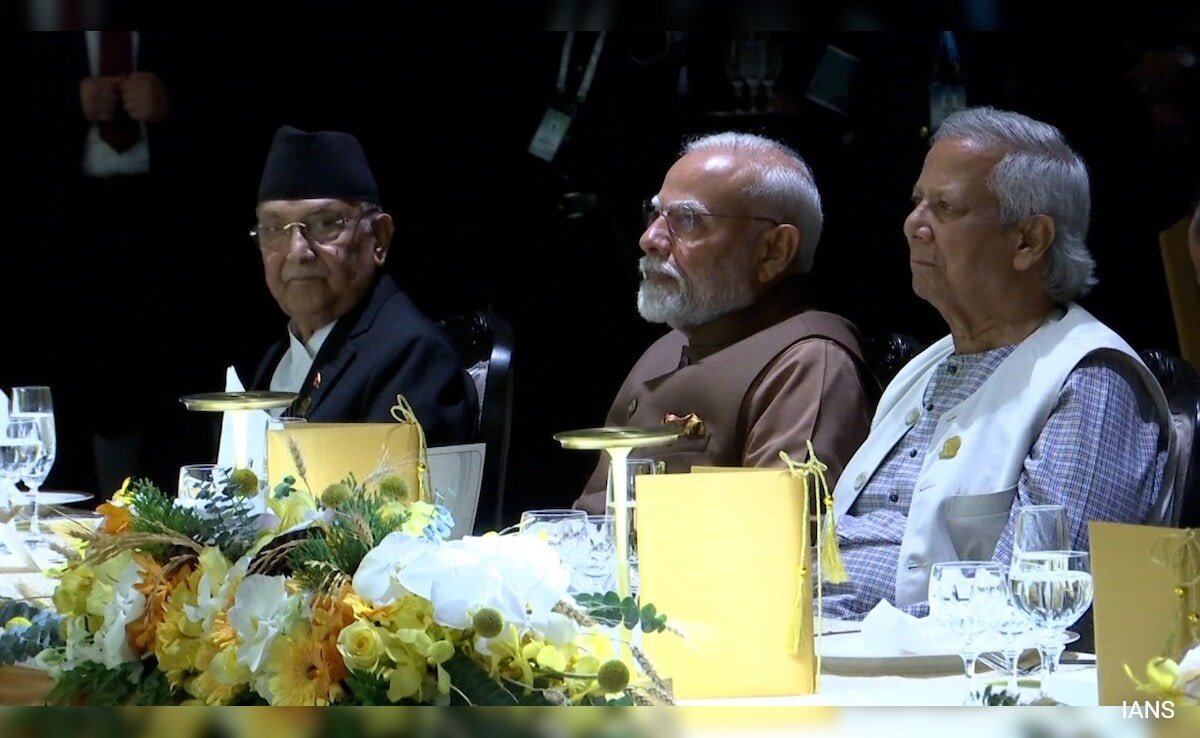El primer ministro Narendra Modi, el principal asesor del gobierno interino de Bangladesh y la cumbre de Bimstec del Banco Muhammad Yunus, se sentó a la cena oficial organizada por el primer ministro tailandés Paytankaran Shinawatra para los jefes del estado y los jefes de gobierno.