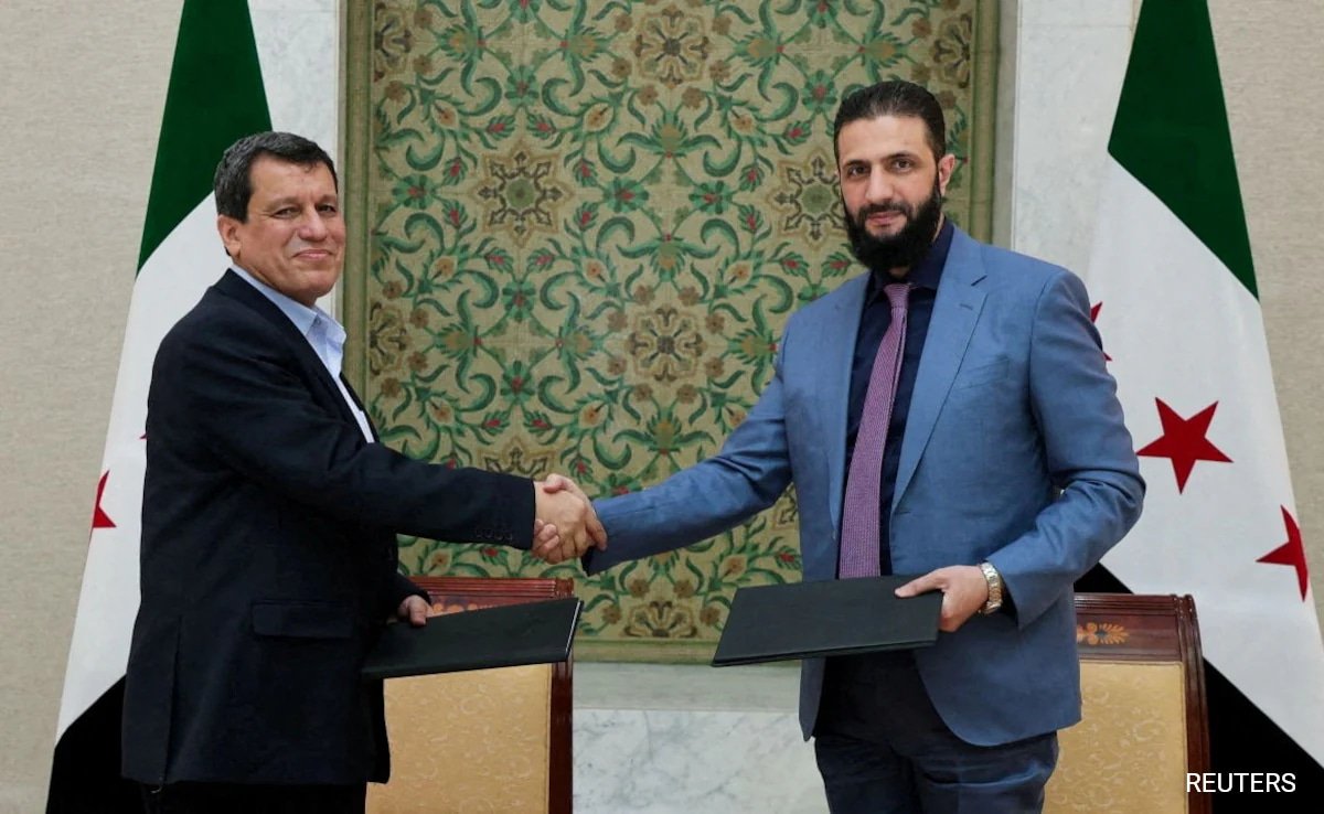 El acuerdo fue firmado en Damasco el lunes, el presidente interino Ahmed Al-Sharai y el jefe de la administración líder kurda del noreste de Siria, el jefe de las Fuerzas Democráticas Sirias (SDF).