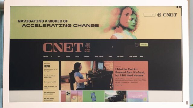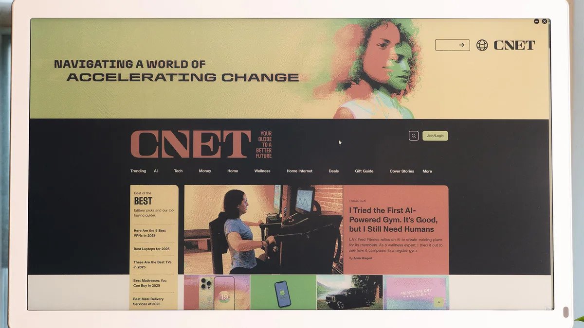 Pantalla Bigme B251 con colores apagados de la página de inicio de CNET.com