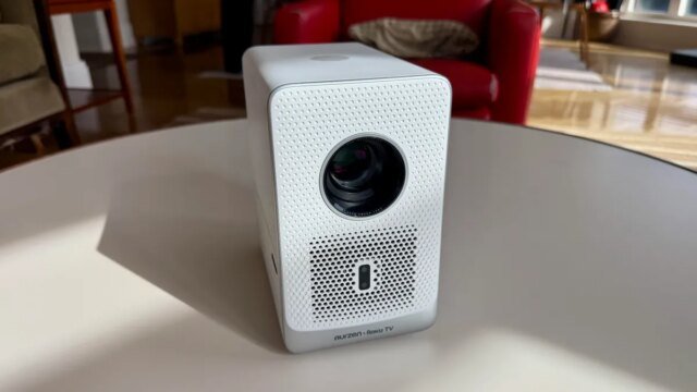 El proyector de TV Aurzen Eazze D1R Cube Roku tiene un motor óptico sellado.