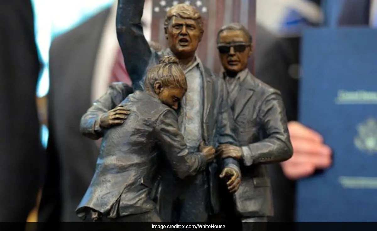 El presidente de los Estados Unidos, Donald Trump, ha agregado una nueva obra de arte en la Oficina Oval, una estatua que representa el asesinato contra él en Butler en Pensilvania en julio de 2021.