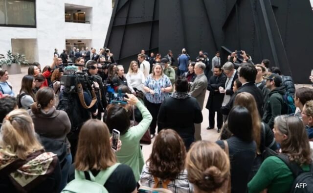 Docenas de manifestantes llevaron el Salón del Senado de los Estados Unidos a la puerta de su mensaje enojado, una parte de la creciente protesta de base contra los trabajadores del gobierno dirigido por el bilontronario Elon Kasturi.