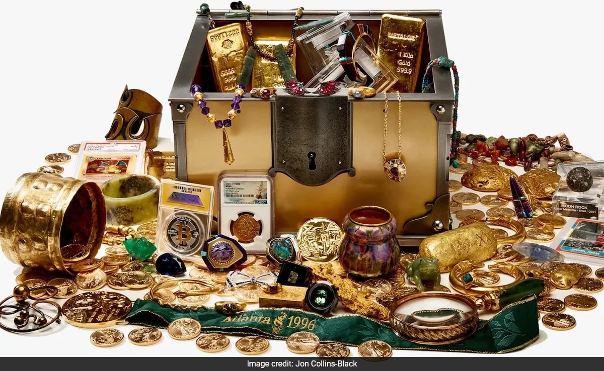 Los cofres del tesoro están llenos de artículos extraordinarios, incluidos doblones de oro, cartas Pokémon raras, un bitcoin valorado en casi 100.000 dólares y artefactos históricos como un broche de diamantes y zafiros que alguna vez perteneció a Jacqueline Onassis. Se pueden encontrar cinco pistas de cofres ocultos en el libro de Collins-Black, Hay un tesoro dentroque presenta rompecabezas y mapas para guiar a los exploradores.