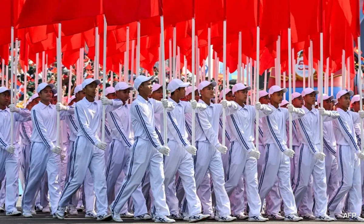 Los aviones de combate y helicópteros que llevan la bandera han volado en la sobrecarga, State TV Images mostró que el líder fundador Ho Chi Min llevó a cabo una flotación que flotaba como parte de una caminata en la ciudad que lleva su nombre.