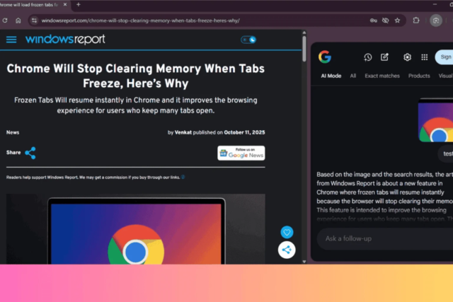 En nuestras pruebas, abrimos la lente de un artículo sobre la nueva regeneración de rayos FSR de AMD. El panel identificó el problema y entregó un breve resumen de los puntos clave. El modo AI funciona con pestañas ya abiertas y archivos agregados. Esta ruta de lente lleva ese comportamiento al panel lateral y proporciona contexto rápido sin abrir una nueva pestaña.