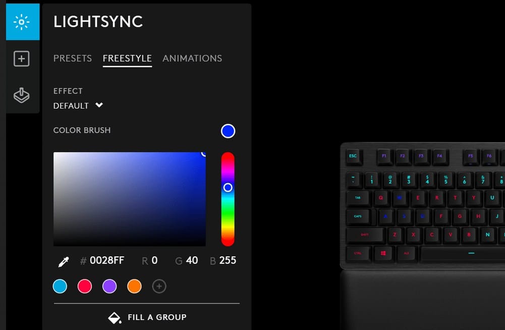 - Elija el tipo de efecto como color fijo, respiración o ciclo.