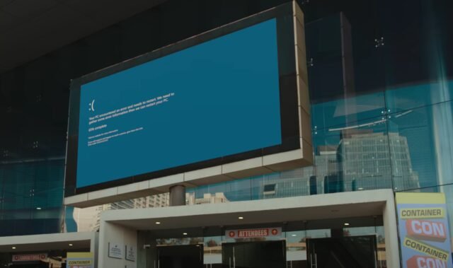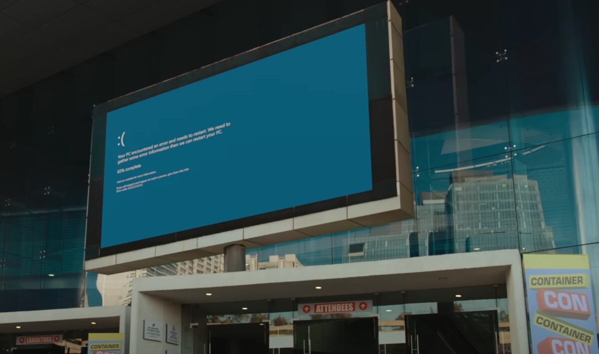 Cuando toda la PC de Windows del evento se bloquea con la pantalla azul de la muerte, el anuncio de repente se vuelve dramático. La gente está preocupada, aterrorizada y suena notificaciones durante la feria. La broma de Apple es “The World Blue” porque Windows 11 estaba devastada en todas partes.