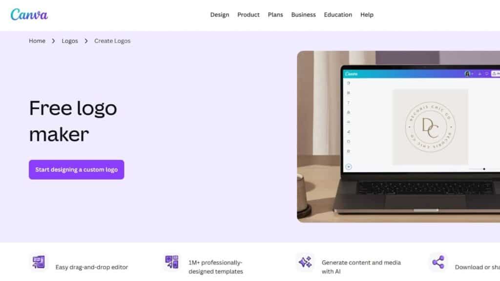 Canva Logo Maker es popular entre los usuarios de Windows por su simplicidad de arrastrar y soltar y su enorme biblioteca de plantillas. El editor permite experimentar rápidamente con colores, fuentes, iconos y formas sin necesidad de conocimientos de diseño.