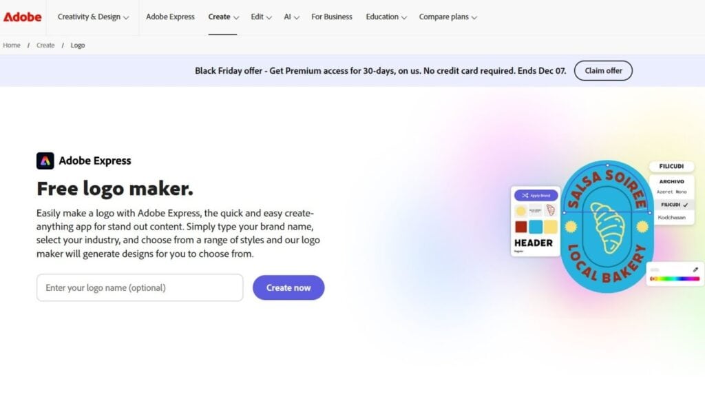Adobe Express Logo Maker ofrece refinamiento de diseño a nivel de Adobe a una interfaz liviana que funciona bien en PC con Windows. La plataforma presenta plantillas de alta calidad y potentes herramientas de tipografía que reflejan los valores de diseño de Adobe.
