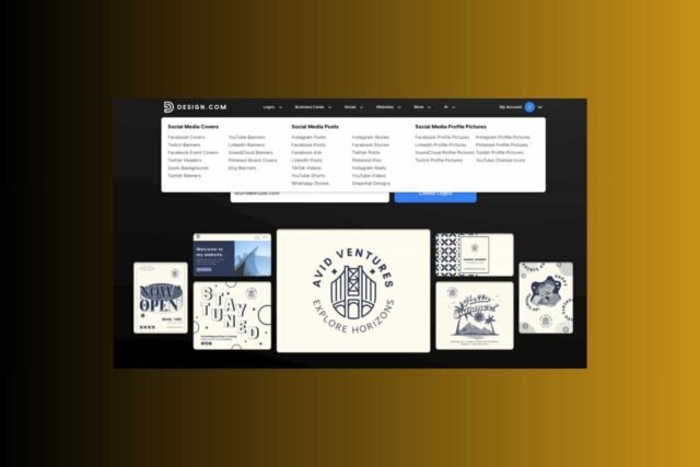 Lo que hace que Design.com sea especialmente valioso para los usuarios de Windows es cómo crea un sistema de marca completo, no sólo un logotipo independiente. Cada logotipo que cree se expande instantáneamente en un kit de marca completo que incluye tarjetas de presentación, folletos, carteles, presentaciones, menús, membretes, códigos QR, sitios web, contenido de redes sociales y más. Más que eso 50 herramientas adicionales de diseño y marca están integrados en la misma interfaz, de modo que toda la identidad es visualmente consistente. La plataforma sincroniza automáticamente los colores, las fuentes y el estilo del logotipo en todas las plantillas para que los materiales de la marca se alineen sin configuración adicional.