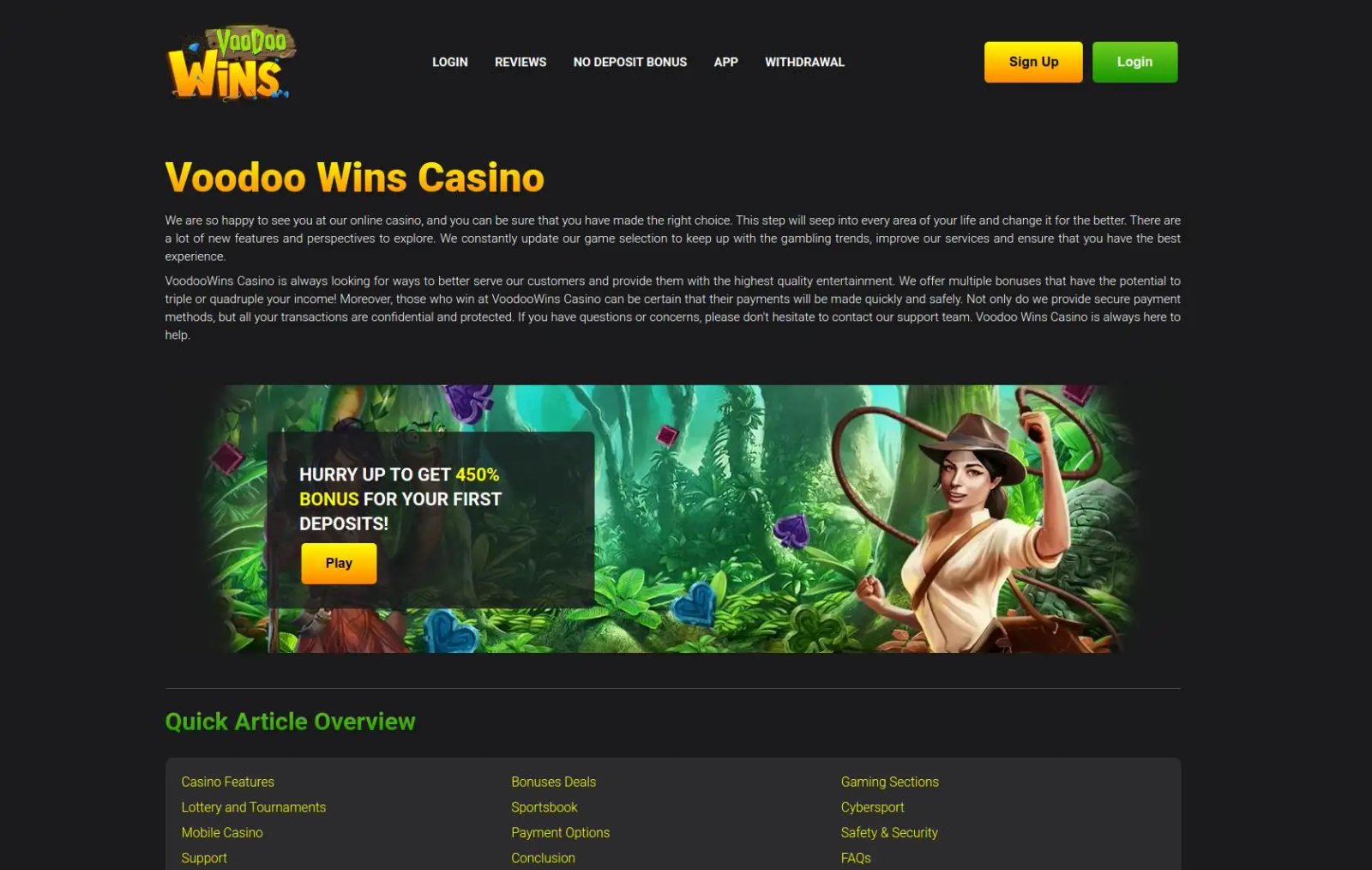 Voodoo Wins Casino se destaca por su interfaz fácil de usar, su amplia gama de juegos y métodos de pago confiables. Su compromiso de brindar una experiencia de juego segura y agradable es evidente en su sólido sistema de transacciones.