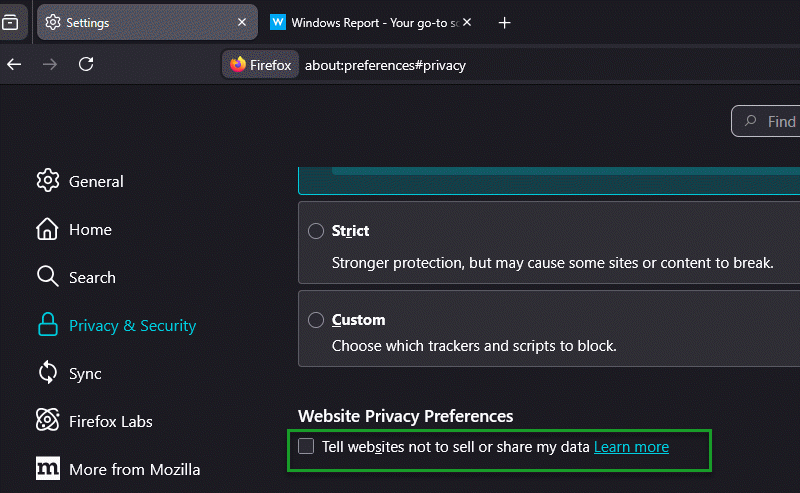 - Envío de encabezados Sec-GPC con solicitudes web