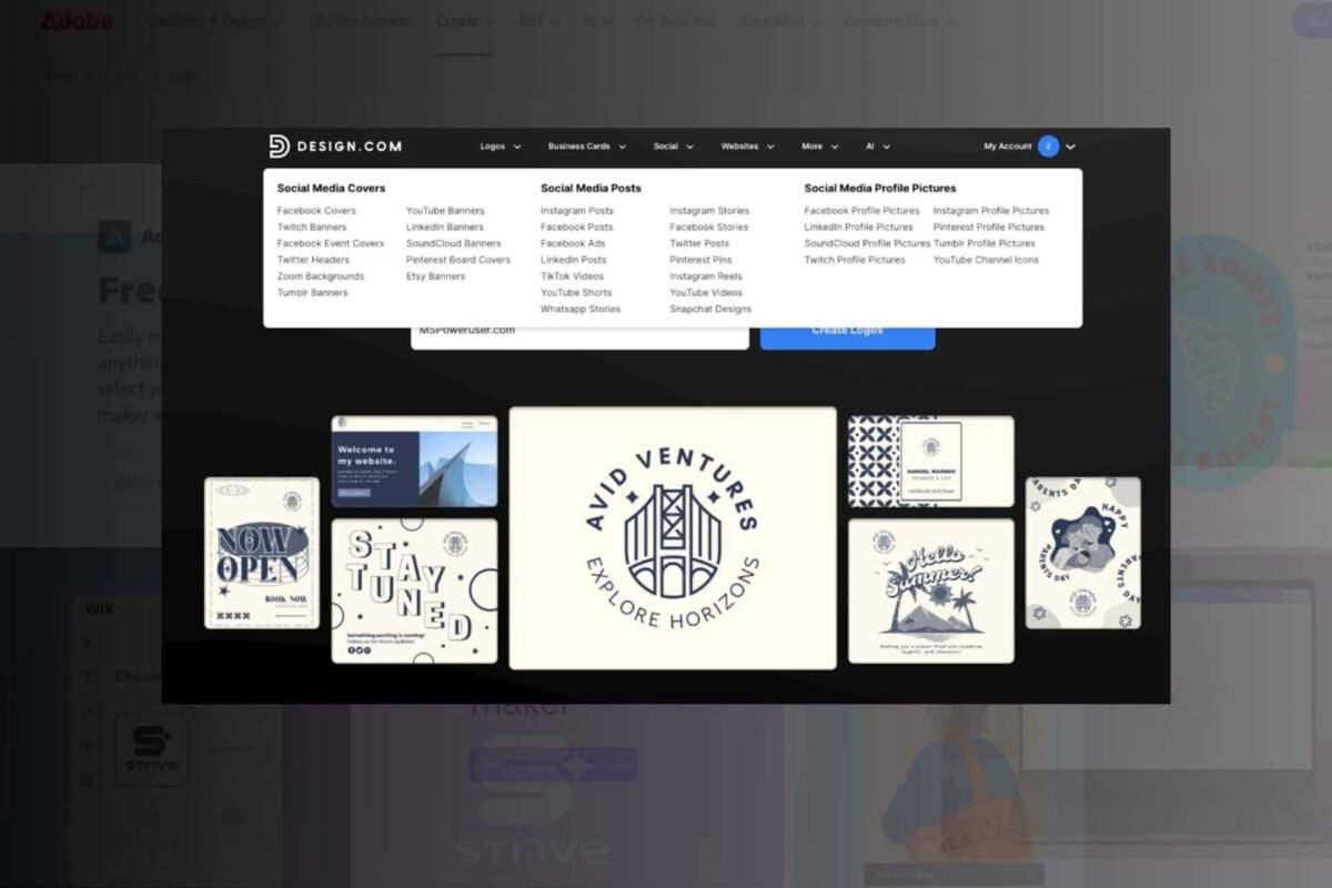 Adobe expreso Incluye un generador de logotipos impulsado por IA simple pero efectivo. No es tan avanzado como las herramientas de Adobe Illustrator, pero es mucho más accesible. Los usuarios pueden elegir entre una colección de íconos, tipografía y combinaciones de colores sugeridos por IA.
