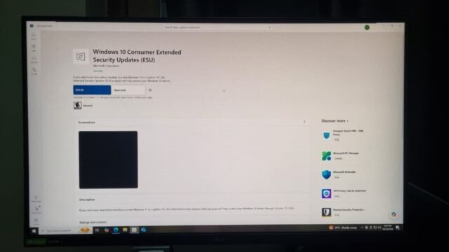 En nuestro examen, Windows mostró por última vez que Microsoft finalmente reveló una Página del producto en la Tienda WindowsTítulo “Actualizaciones de seguridad extendidas para el consumidor (ESU) de Windows 10”. Esta es una extensión que activa ESU para cuentas locales. Apenas tiene un tamaño de 0,1 MB y ofrece opciones tanto de pago como gratuitas.