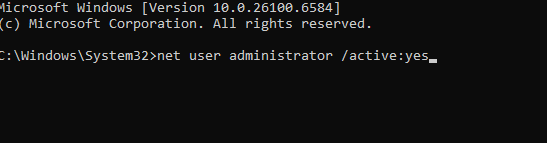 Puede activar la cuenta de administrador integrada directamente desde el símbolo del sistema con un comando general.